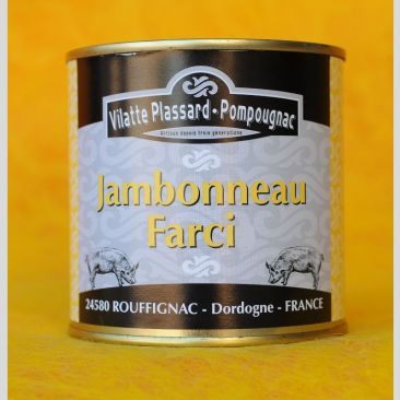 Il s'agit d'un jarret de porc aromatisé de thym, de laurier, et farci d'une chair de porc parfumée au Madère.